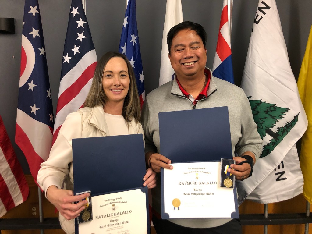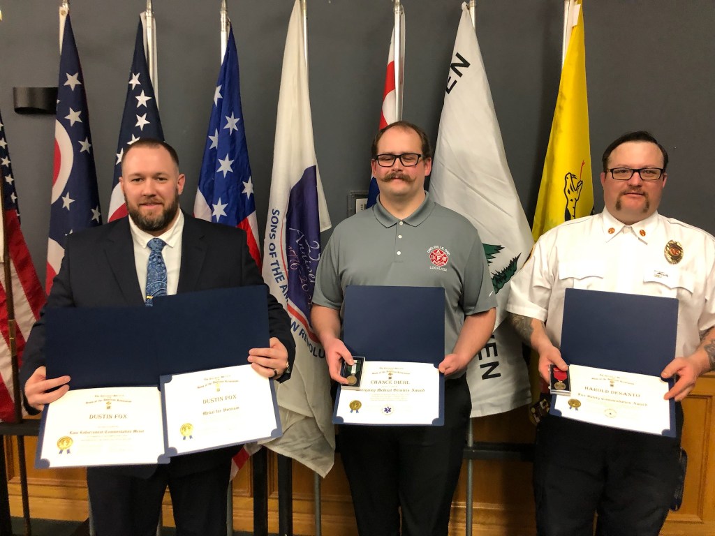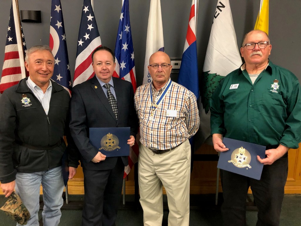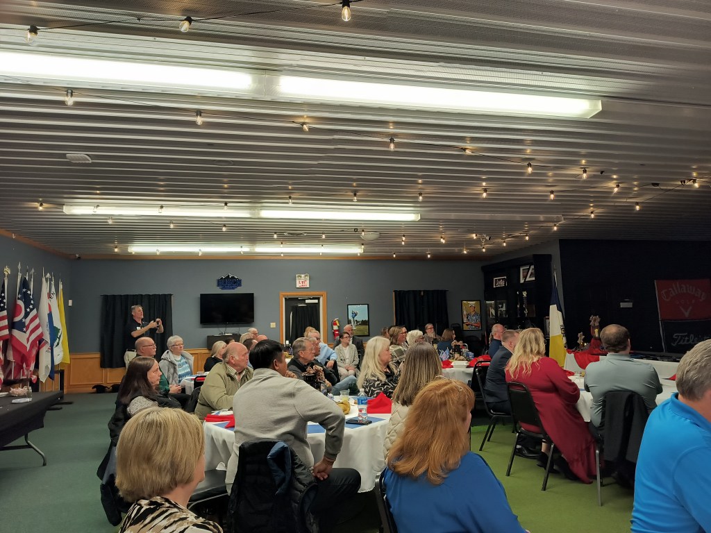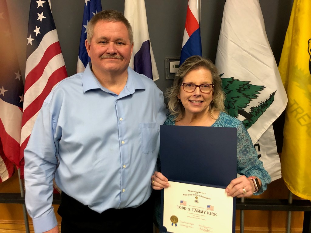 February 21 2026 Camp Charlotte held their first ever Awards banquet at the Crown Hill Golf course honoring many with awards in the local community. Award of Medal of Heroism, Emergency Medical Services and many others were handed out with certificates of appreciation given to many that have helped the Camp Charlotte chapter in the past to promote the work of the SAR. Chapter President Kevin Driesbach was the host of honor for the event. A special surprise was given by Chapter member Tony Holbrook on a gavel that was made with 7 pieces of wood from various American revolutionary locations and presented to President Driesbach. Wood from all over were use to embellish the gavel even the original Logan Elm tree from which Chief Logan gave his instrumental speech and wood from the cabin at Point Pleasant are a part of this instrument.